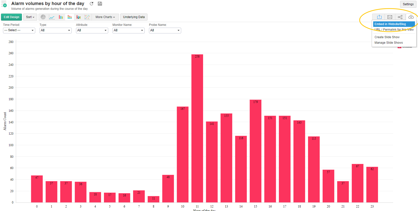 Step 1: Create an Embedded iframe for the report required: (Under ITOM database, open the specific report and use the embed icon)