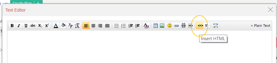 Step 4: On the Text editor, click on 'Insert HTML' :