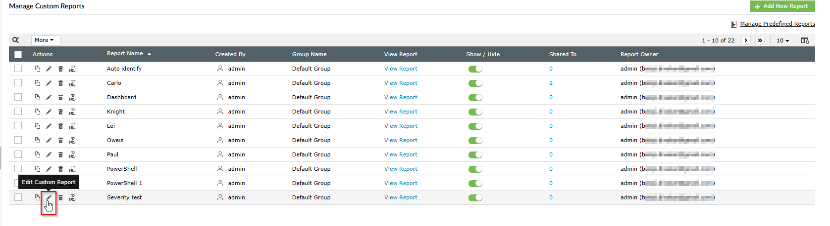 In your EventLog Analyzer, go to Reports → Manage Reports → Edit the respective custom report.