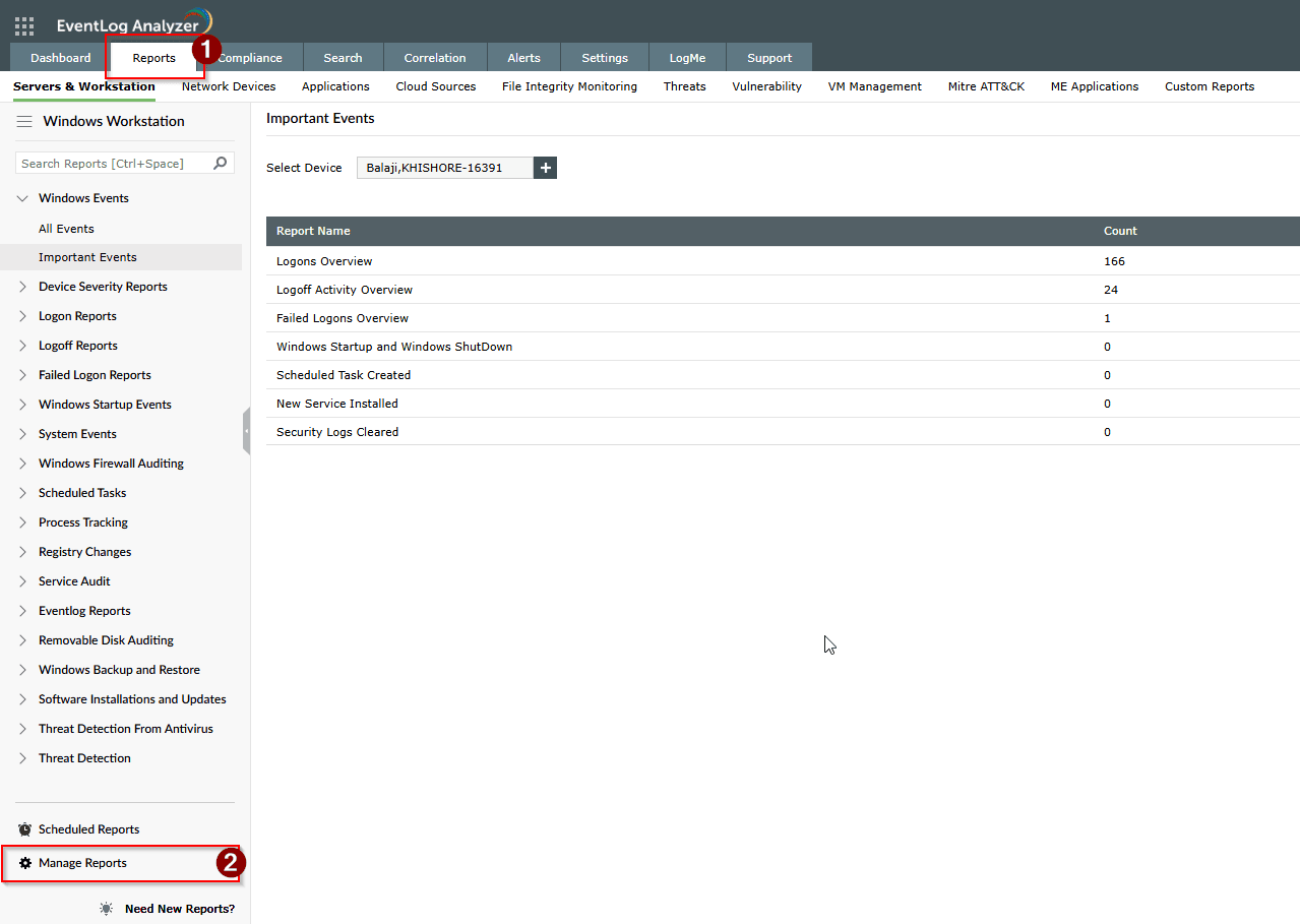 Cross-check the device type (Windows, Syslog, etc.) before finalizing report criteria.