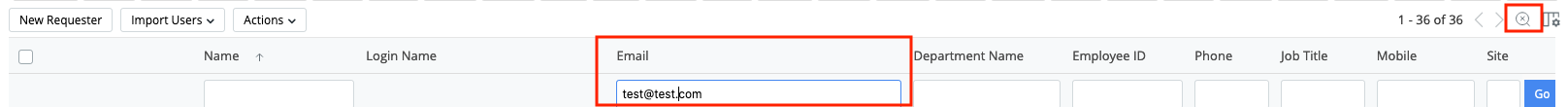 When adding an user if you get the error email address already exists, please goto Setup-->Users and Permissions-->Requesters and us the search option to search for the email address as per the screenshot below,