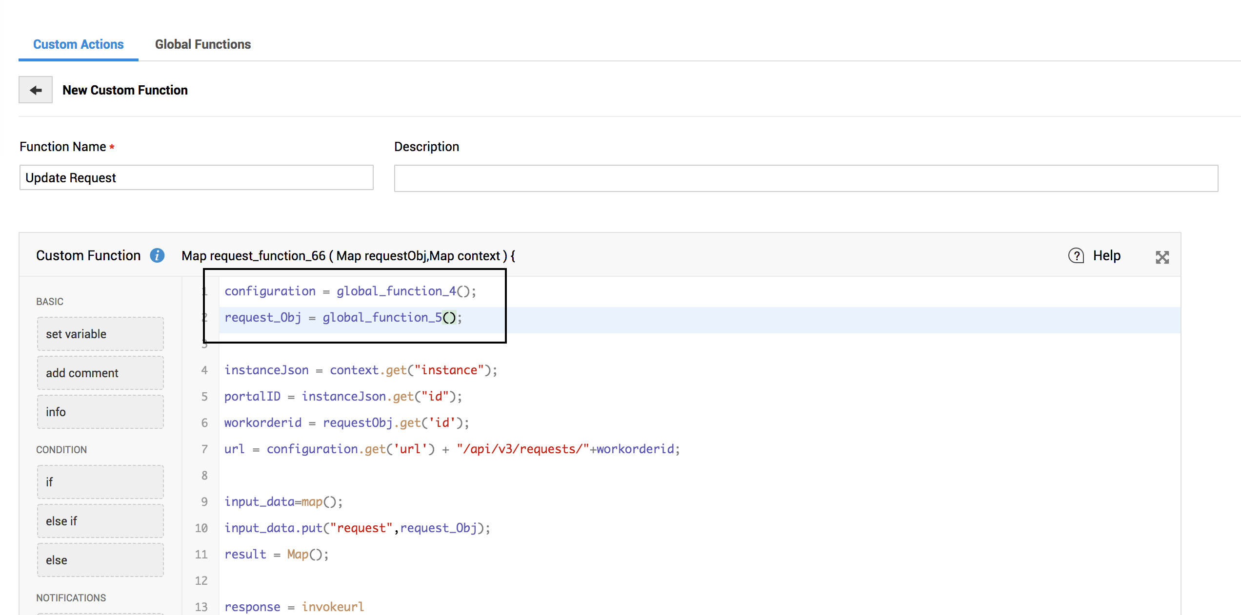 4. Goto Admin > Request Custom Function > Custom Function > New > Paste the contents of update_request.txt