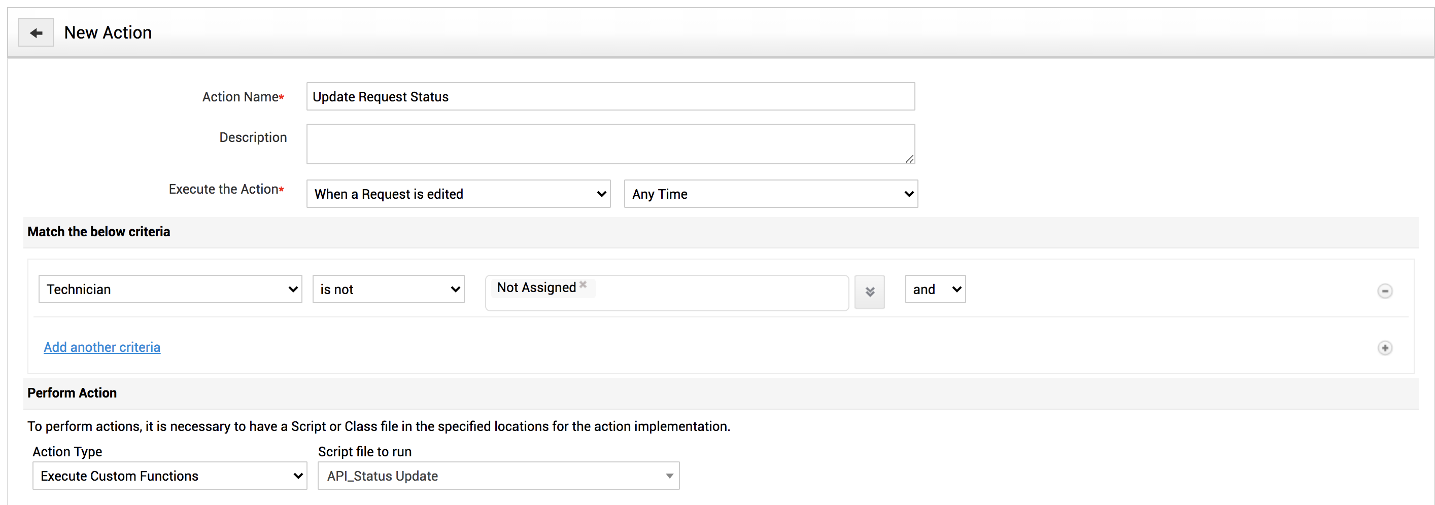 4. Configure the created custom function in a custom trigger to get executed when a technician is assigned to a request.