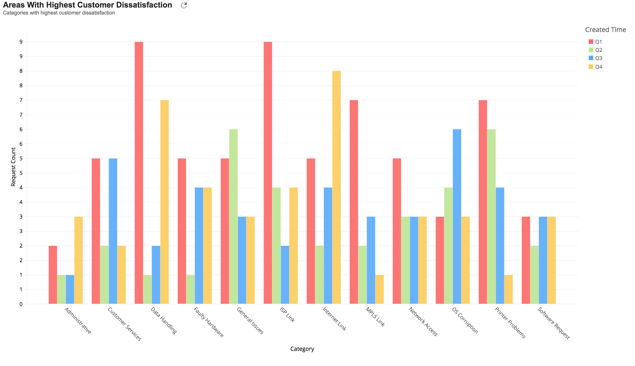 Below is a report depicting the areas with highest customer dissatisfaction.