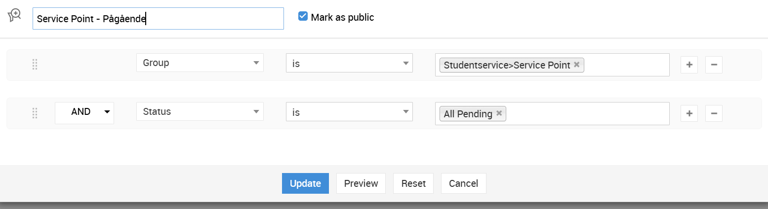 Both users are members of the Group Service Point, both users have the same role.
