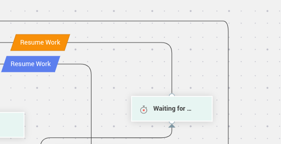 The Status Waiting for Requester is an OnHold status and transitions through "Resume Work" to the Open status.